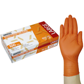 100% Orange medical grade nitrile Toughest Disposable Glove on the market! High puncture & chemical resistance Great precise handling Recommended for Automotive , Hairdressing , Hydraulics & Diesel Mechanics & much more