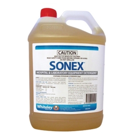 Sonex is a highly active liquid detergent free of dye and odour. It is designed for machine cleaning of anaesthetic equipment, instruments, plastic and glass utensils in hospitals, pathology and research laboratories.