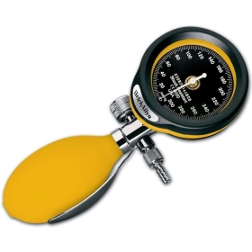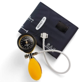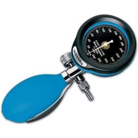 The Welch Allyn DuraShock DS55 is a traditional thumbscrew-style air release valve aneroid sphygmomanometer. The DS55 is available in five colour schemes - chrome, blue, yellow, red and black.