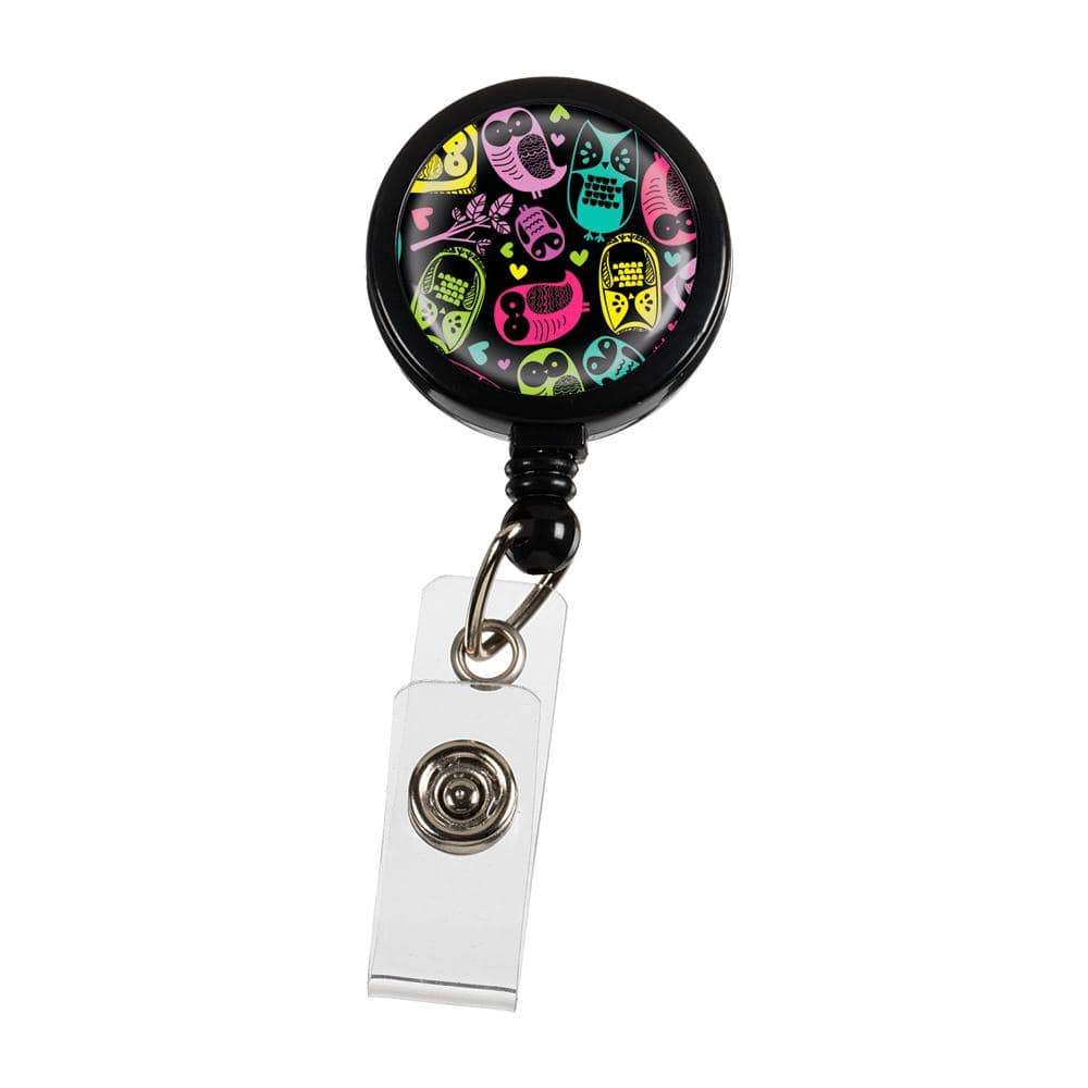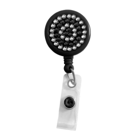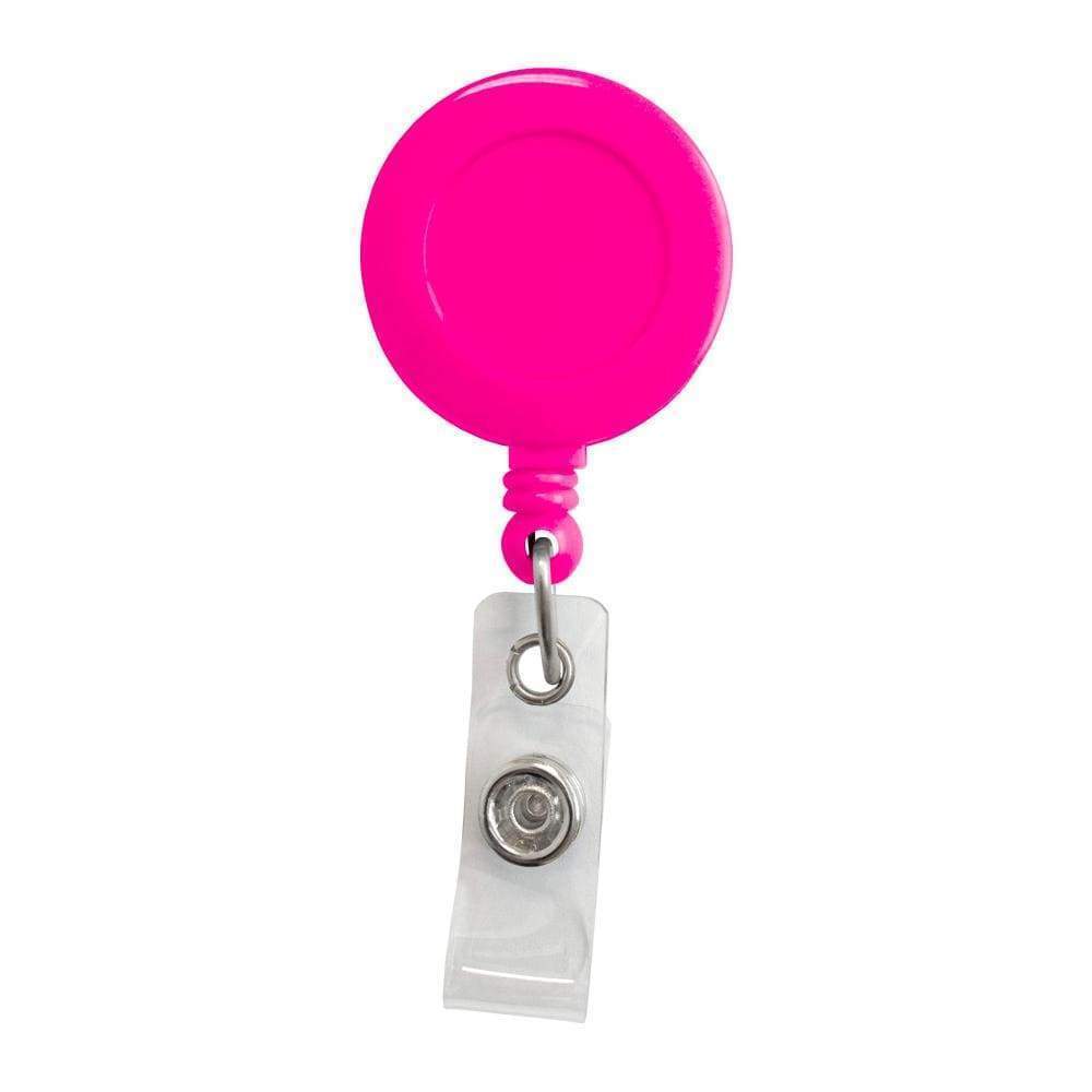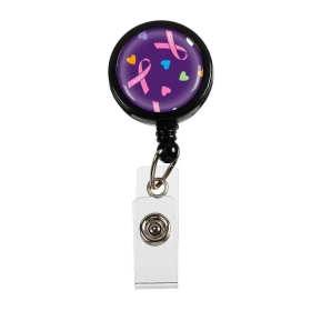 Metal clip on back enables fastening to apparel. Button-snap ID holder can also be used to carry keys.