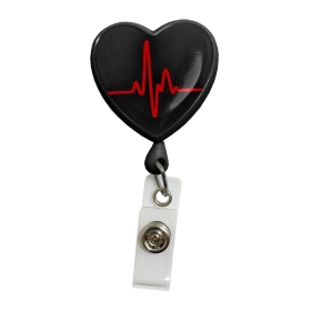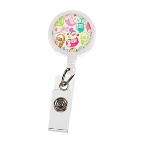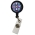 Metal clip on back enables fastening to apparel. Button-snap ID holder can also be used to carry keys.