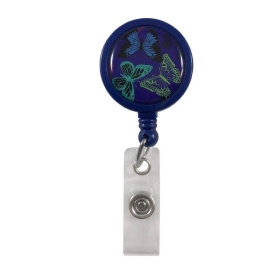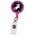 Metal clip on back enables fastening to apparel. Button-snap ID holder can also be used to carry keys.