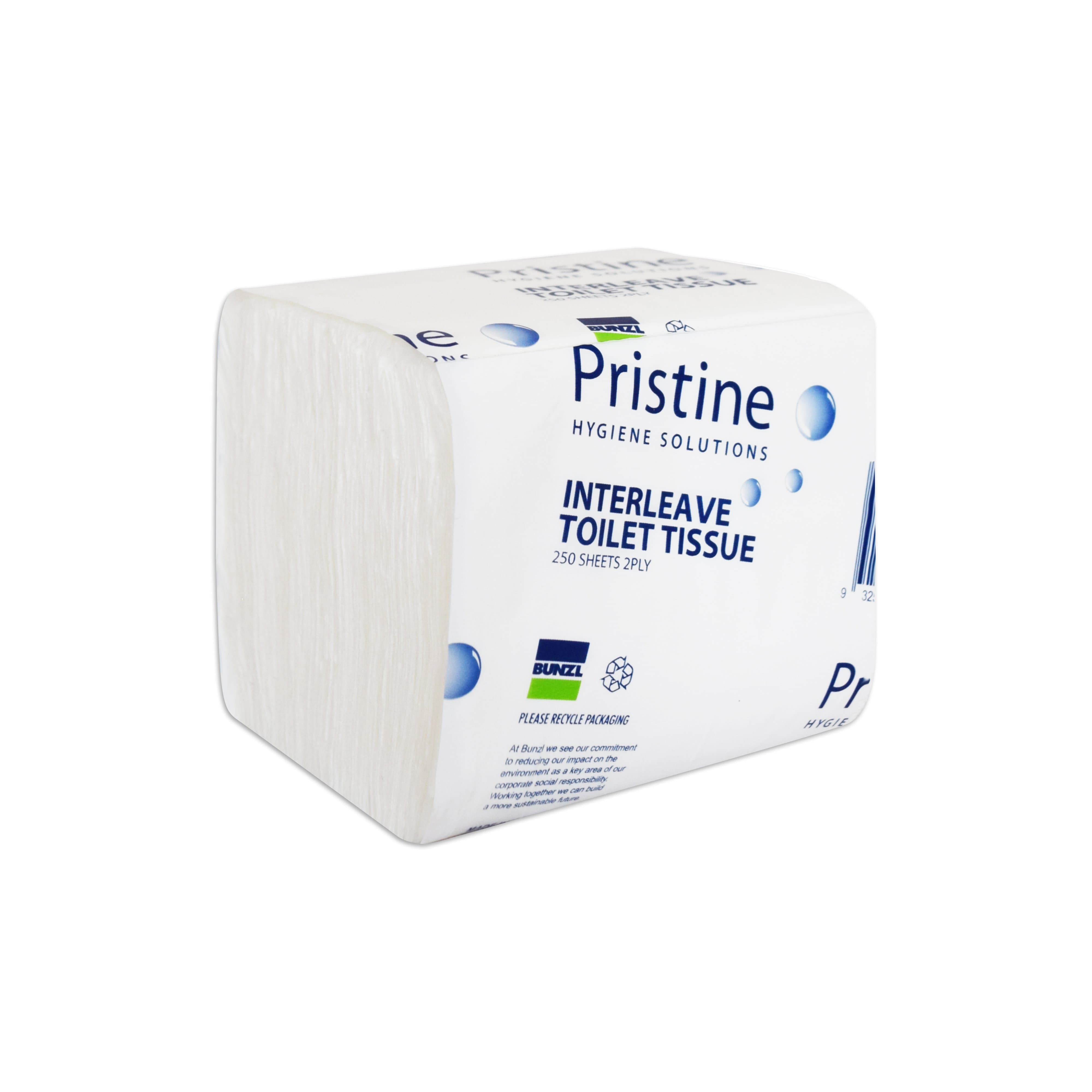 Pristine Premium soft interleaved 2 ply toilet tissue 250 sheet is suited for washroom use. Pristine Premium toilet soft interleaved 2 ply toilet tissue promotes a hygienic bathroom, with the one touch interleaved design, ensuring user satisfaction. Washroom paper is a critical part of our lives when it comes to hygiene, cleanliness, and comfort - and the research shows that having quality products in your washroom does make a difference. People notice! Provide your family, business or customers with quality washroom paper.