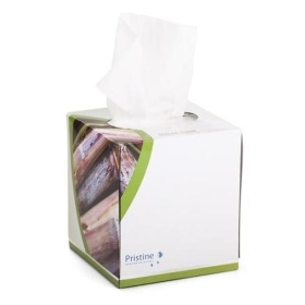 Pristine sugarcane facial tissue cube 2 ply are a high-quality sustainable product. Pristine sugarcane facial tissue comes in a box of 90. Made from recycled sugarcane pulp it is strong and absorbent, making it ideal for various applications. Pristine sugarcane range is high quality, soft and absorbent. The products are not only great for home use, but meet the needs of facility management in both value and environmental goals.