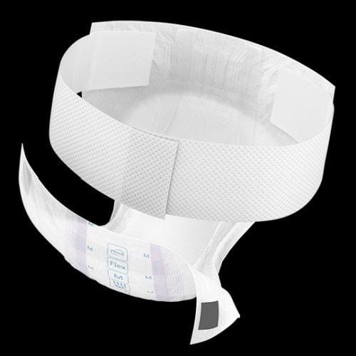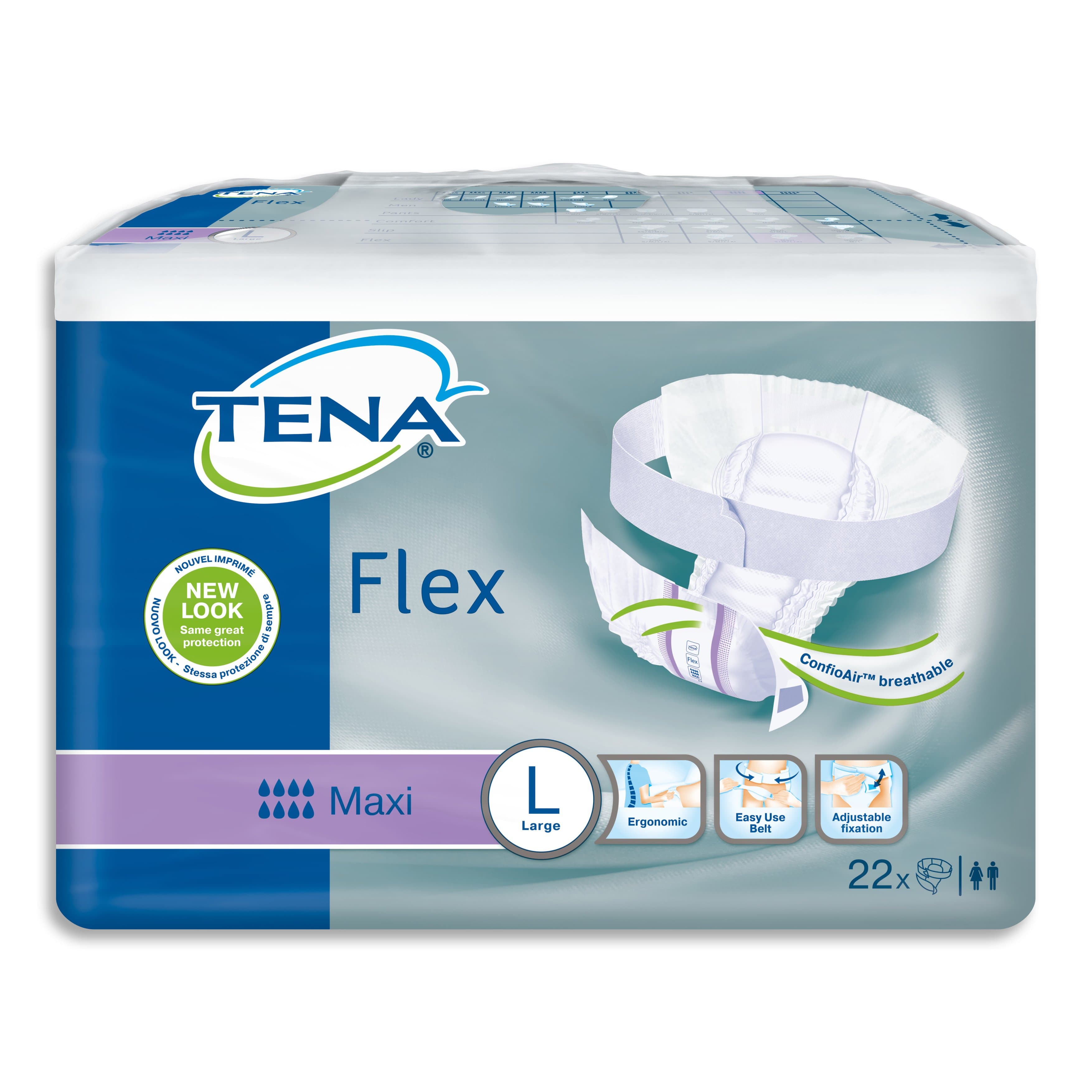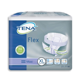 TENA Flex Maxi is a flexible belted incontinence brief designed to allow easier and more ergonomic product changes, suitable for people who are mobile, semi-mobile or immobile. For outstanding protection TENA ProSkin Flex with FeelDry Advanced quickly draws the liquid away from the surface, keeping the skin dry. The super absorbing, fast acting core then rapidly locks in urine, even in larger quantities, for dryness and the fully breathable ConfioAir back-sheet allows skin to breathe. All these features help to maintain natural skin health. The adjustable ComfiStretch belt enables a body-close fit to increase comfort and provide better security against leaks. For ease of use, the belt has easy-grip hooks which can be fastened at the front and are fully adjustable to suit different body types.