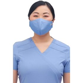 Made from Cherokee Revolution Tech scrubs fabric, this face covering is comfortable, washable, and reusable, with an innovative, three-ply design that offers better filtration than standard two-ply face coverings. It features Certainty antimicrobial and fluid barrier fabric technologies in the outer layer, and two soft 100% cotton inner layers. It's shaped to fit the face, with a sturdy center front seam for more comfort and breathability, and soft, tubular elastic ear loops to hold it comfortably in place. Always wash and dry face coverings after each use.