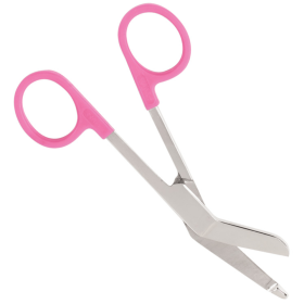 These bandage scissors feature a traditional Lister bandage scissor design, molded plastic handles, and stainless steel blades.