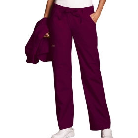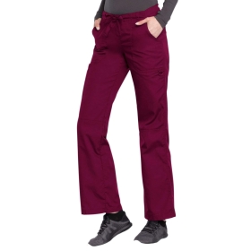 Cherokee Workwear 4020 Scrubs Pants Women's Low Rise Drawstring Cargo Wine