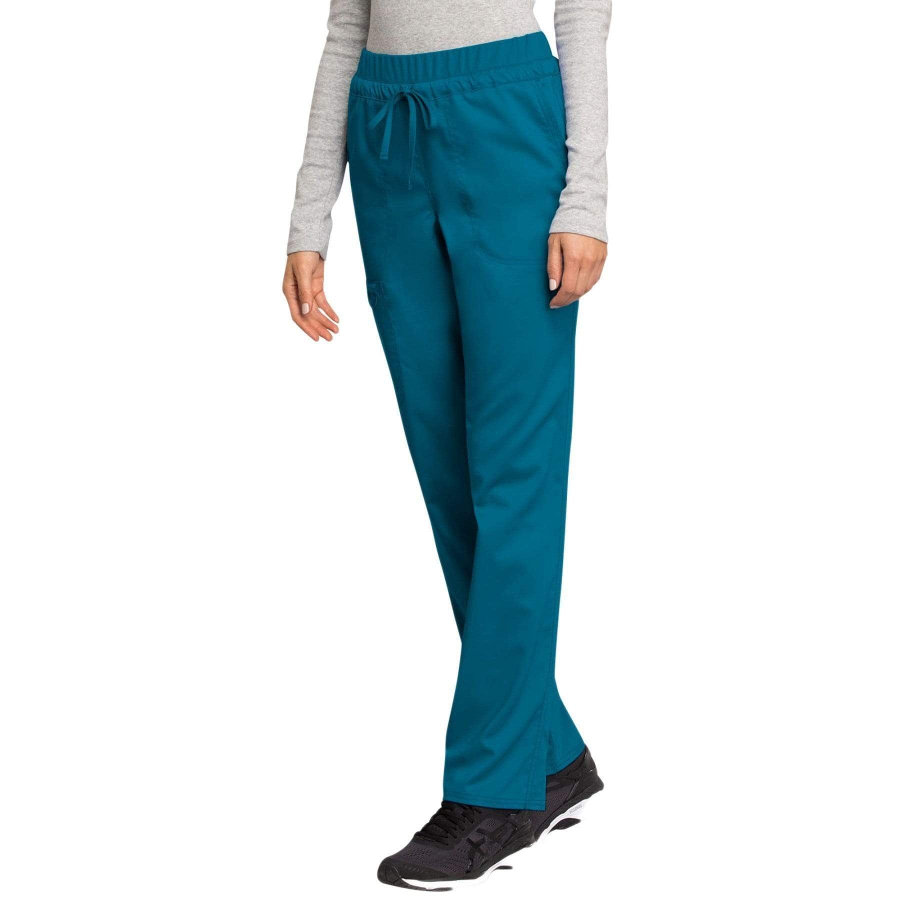 Cherokee Workwear Revolution WW105 Scrubs Pants Women's Mid Rise Tapered Leg Drawstring Caribbean Blue