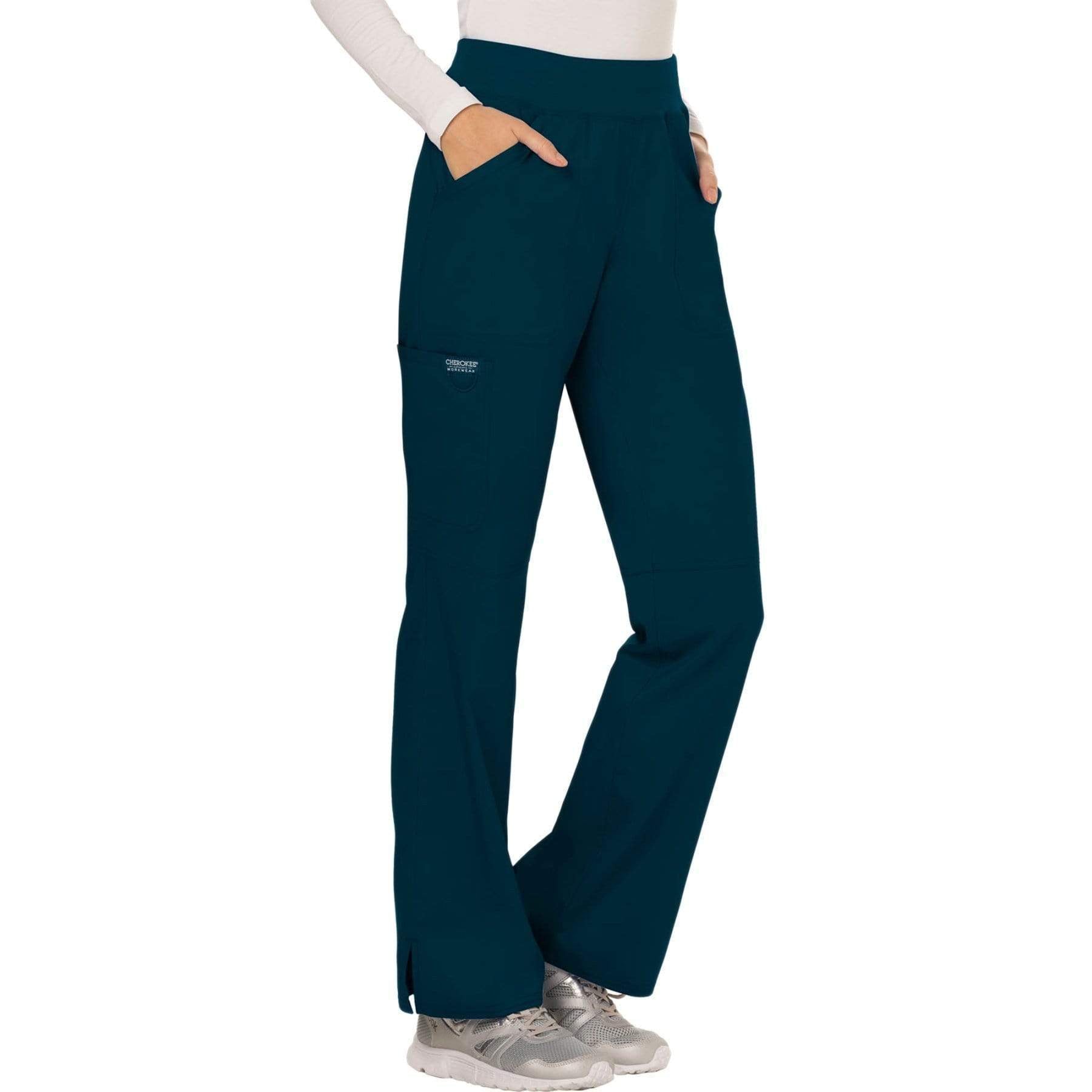 Cherokee Workwear Revolution WW110 Scrubs Pants Women's Mid Rise Straight Leg Pull-on Caribbean Blue