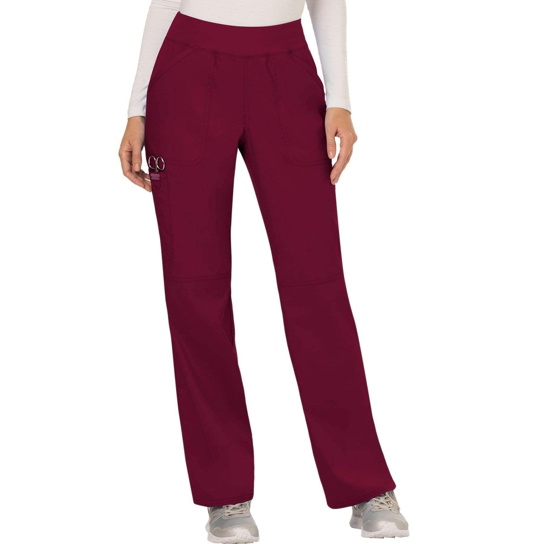 Cherokee Workwear Revolution WW110 Scrubs Pants Women's Mid Rise Straight Leg Pull-on Wine