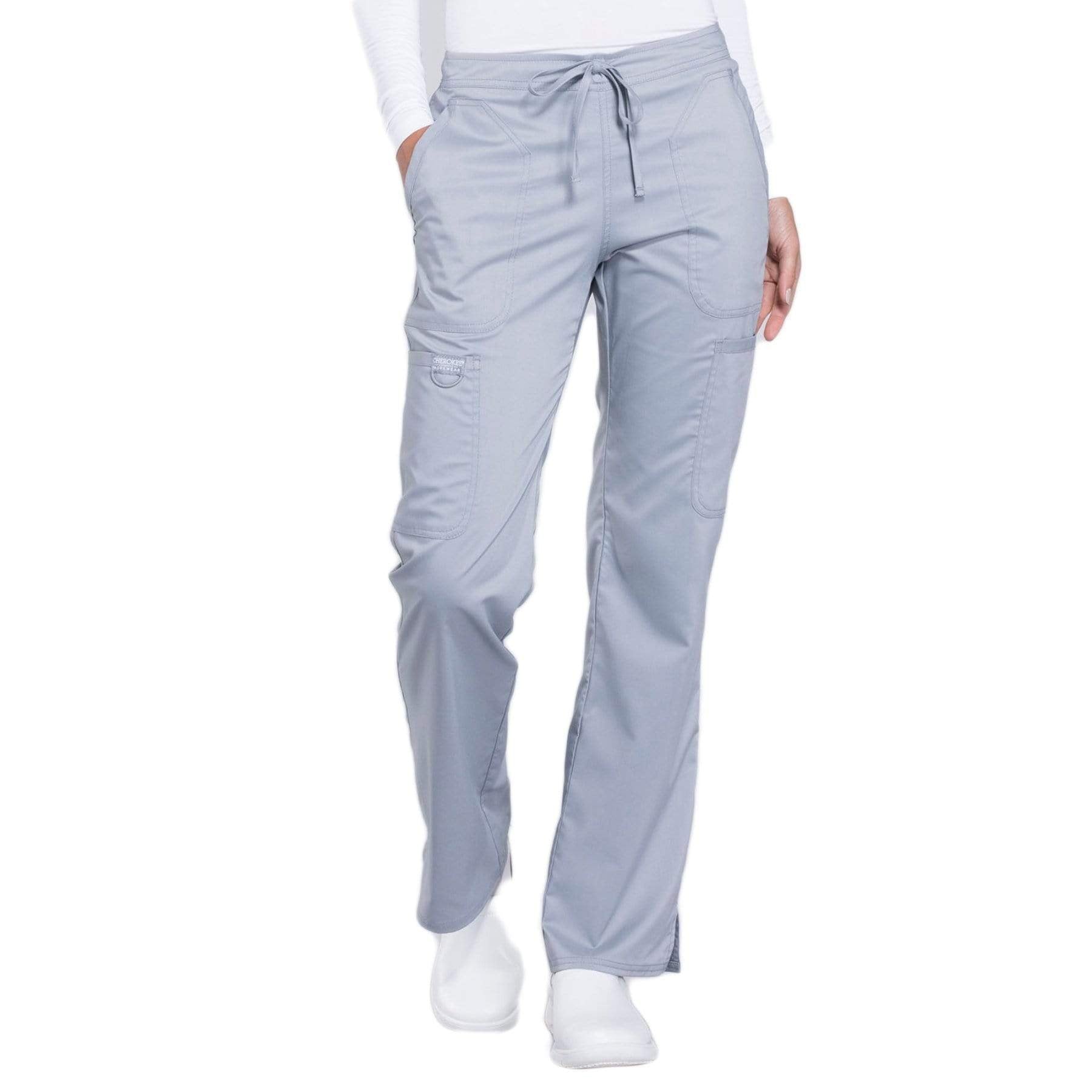 Cherokee Workwear Revolution WW120 Scrubs Pants Women's Mid Rise Moderate Flare Drawstring Grey