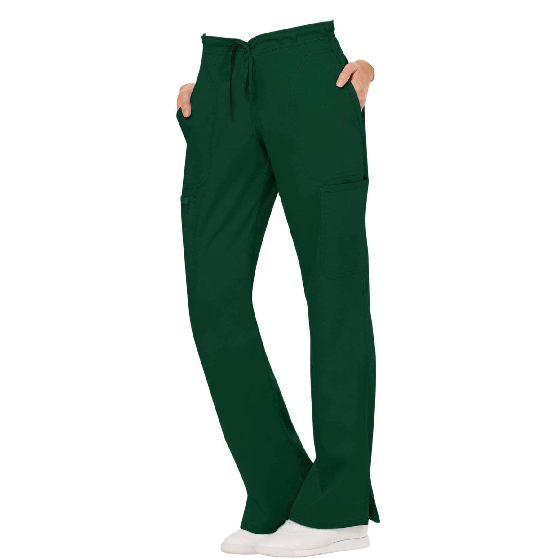 Cherokee Workwear Revolution WW120 Scrubs Pants Women's Mid Rise Flare Drawstring Hunter Green
