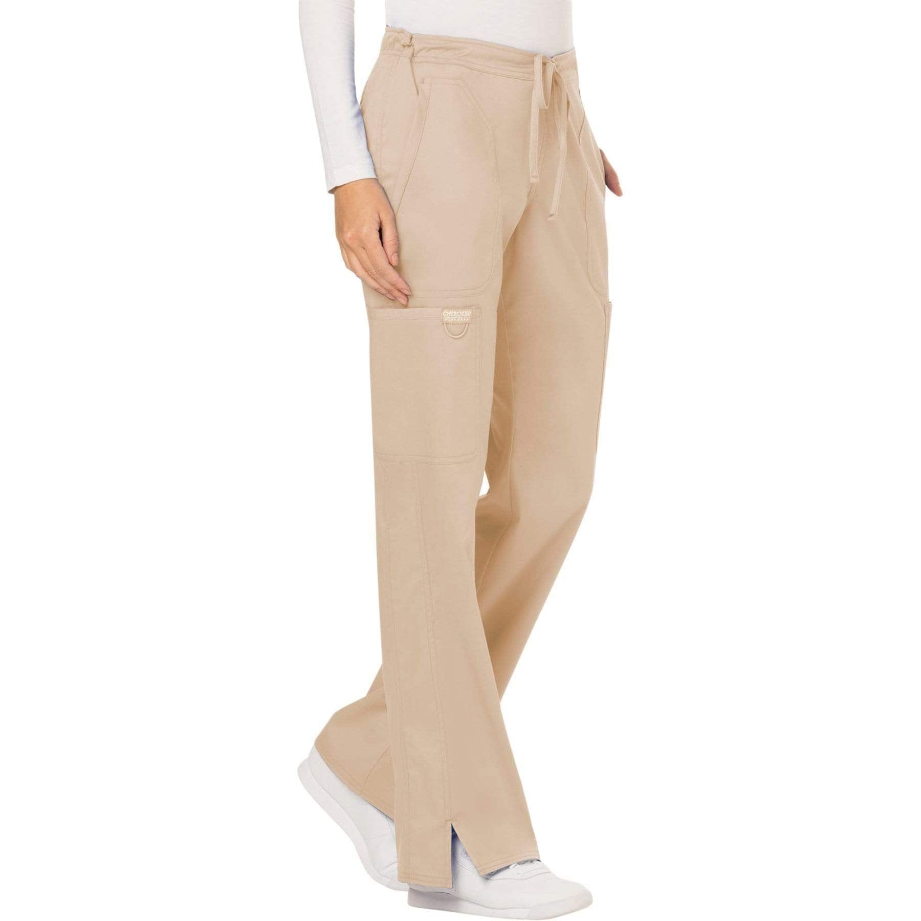 Cherokee Workwear Revolution WW120 Scrubs Pants Women's Mid Rise Moderate Flare Drawstring Khaki