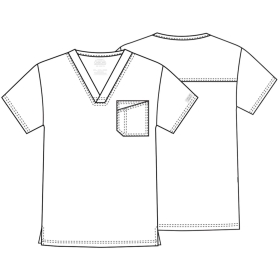 Men's V-neck top features double chest pocket with pencil stitch, back yoke, double needle topstitching and side vents. Center back length: 29"