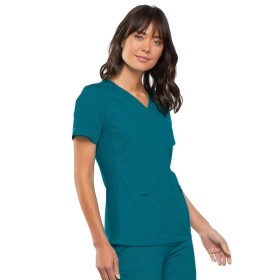Cherokee Flexibles 2968 Scrubs Top Women's V-Neck Knit Panel Caribbean Blue