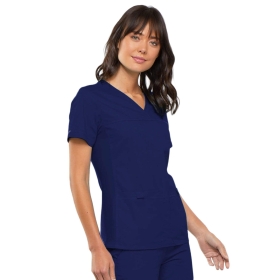 Cherokee Flexibles 2968 Scrubs Top Women's V-Neck Knit Panel Navy