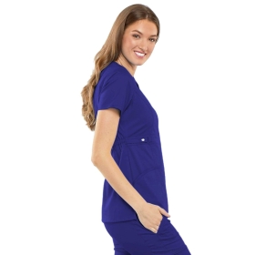 Cherokee Luxe 21701 Scrubs Top Women's Empire Waist Mock Wrap Galaxy Blue