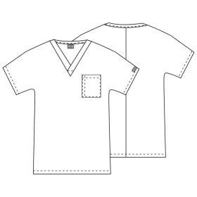 A dolman sleeve, V-neck Unisex tunic has a chest pocket with a pencil slot. Center back length 27.5" bullet