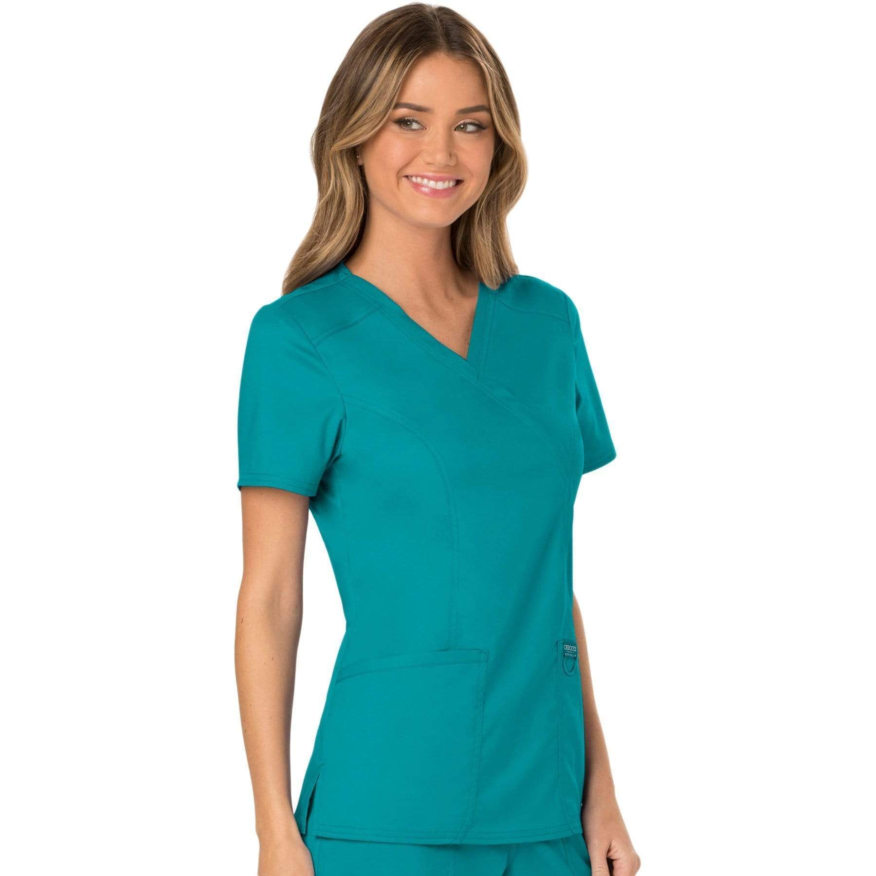 Cherokee Workwear Revolution WW610 Scrubs Top Women's Mock Wrap Teal Blue