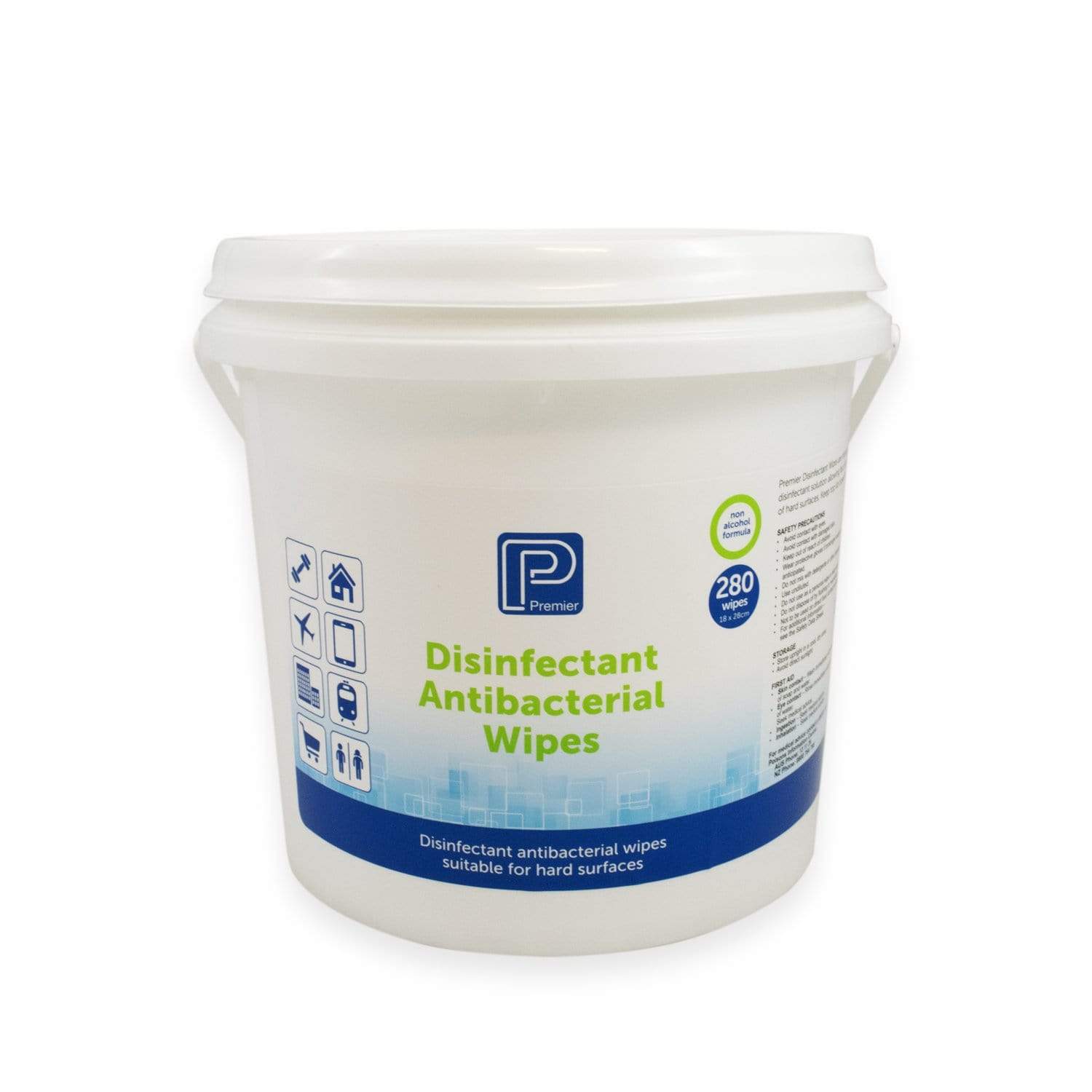Premier disinfectant antibacterial alcohol free wipes come with hard flip top lid to avoid wipes drying out. Premier's general-purpose wipes are suitable for disinfecting pre-cleaned hard surfaces, effectively killing of bacteria and germs.