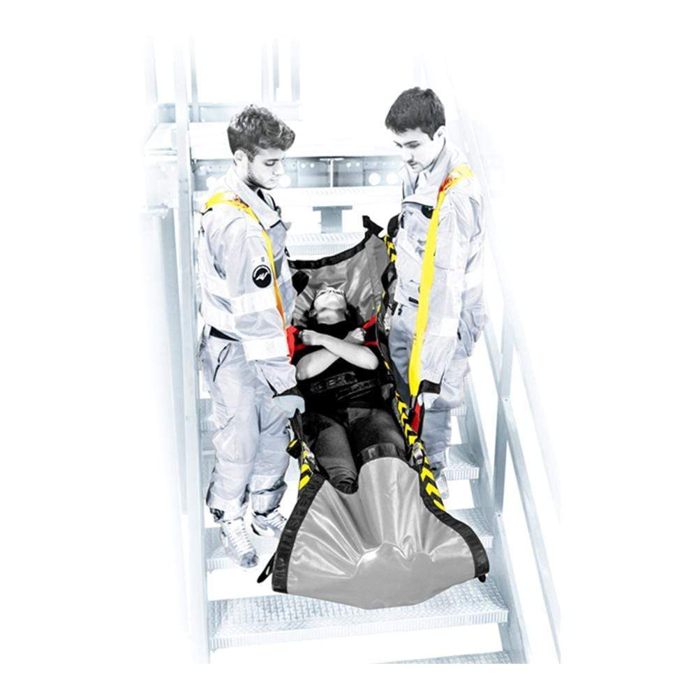 The sheet is ideal for rescue operations and during operations on stairs or in confined spaces; the patient can be transported both in the lying and sitting position. The double layer structure is incredibly resistant and it creates a special retaining pocket on the back of the device, where the lateral supports and other accessories can be stored. Its made with fireproof and non-absorbent fabric that allows rapid and efficient sanitisation.