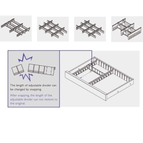 | Fixed Dividers | Fit together in a set format that splits the drawer in a predefined ratio |
